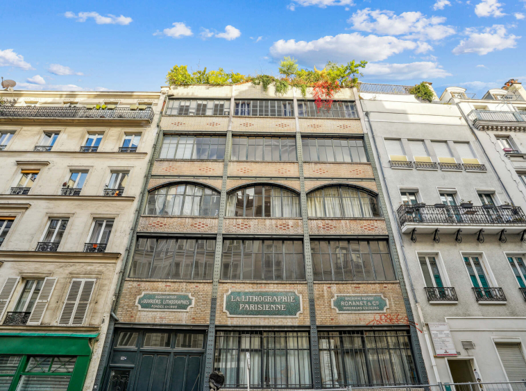 Situé entre les stations République et Belleville, cet espace privatif de 24 postes est installé au 1er étage d’un immeuble de standing, ancien siège de la Lithographie Parisienne.