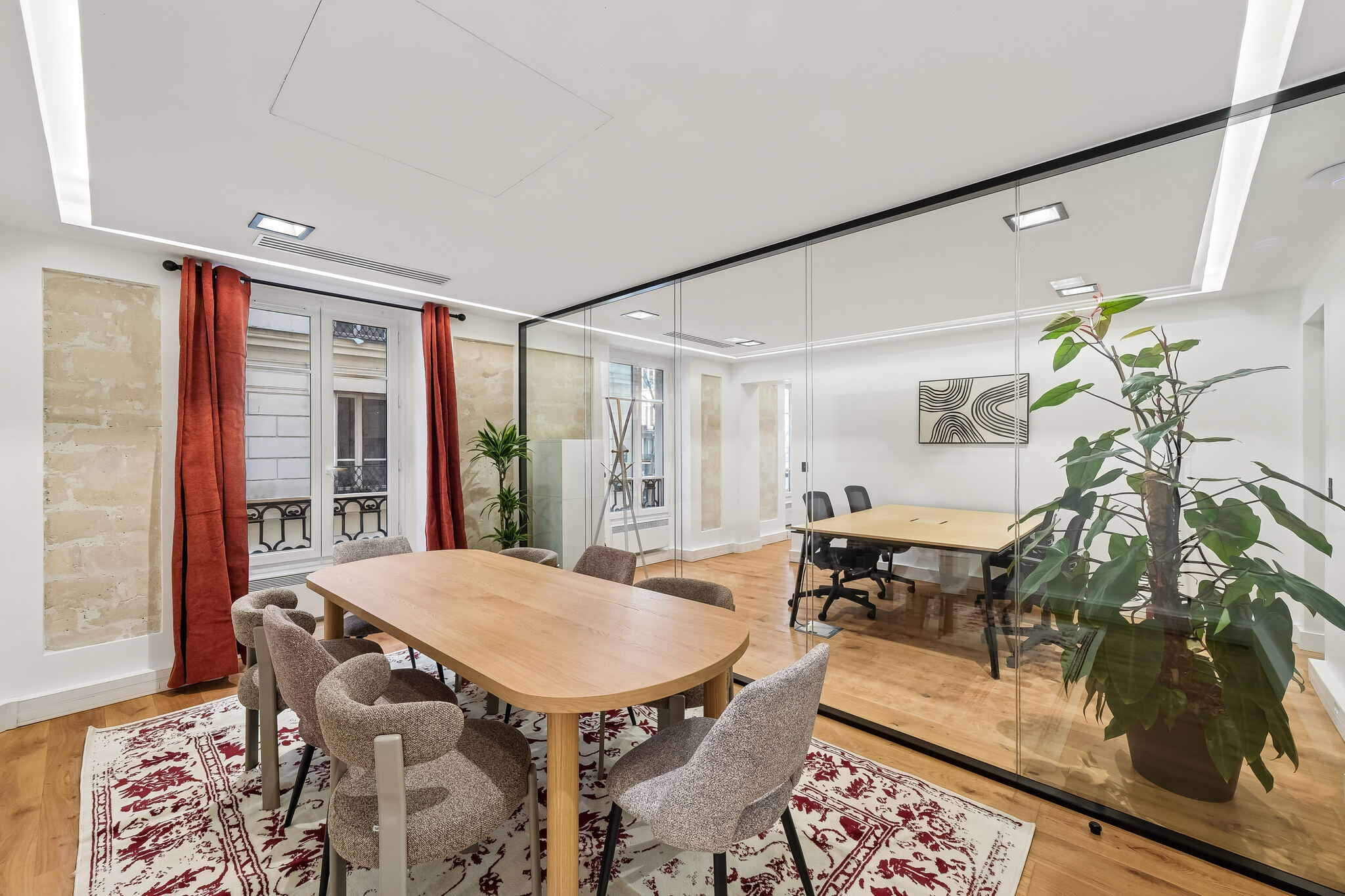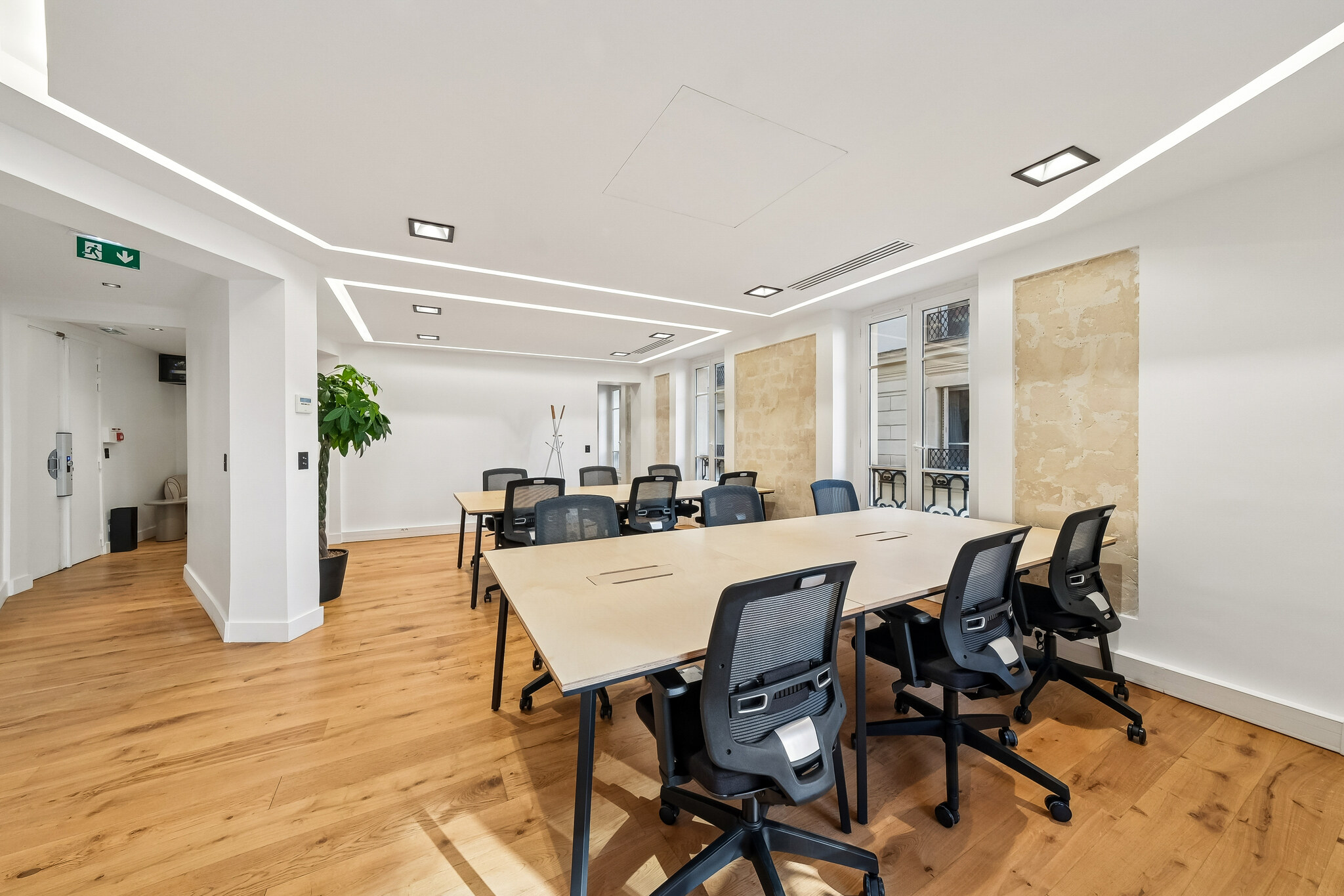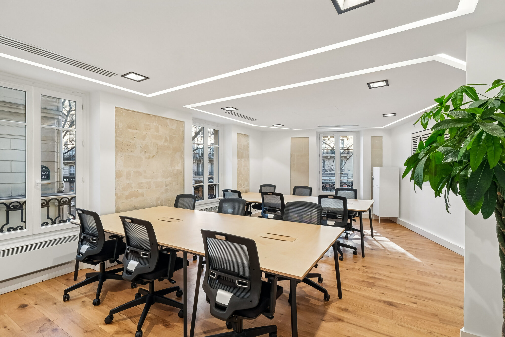 Niché dans un magnifique immeuble en pierre de taille, cet espace de grand standing vous offre le cadre idéal pour développer votre activité en toute sérénité. Avec sa belle hauteur sous plafond et sa climatisation intégrale, vos 16 collaborateurs travailleront dans des conditions optimales toute l’année. 🌡️
