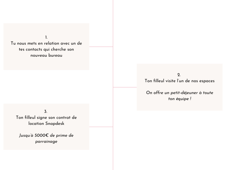 Si votre filleul fait son entrée dans un espace snapdesk, vous touchez une prime indéxée sur le nombre de postes de travail
