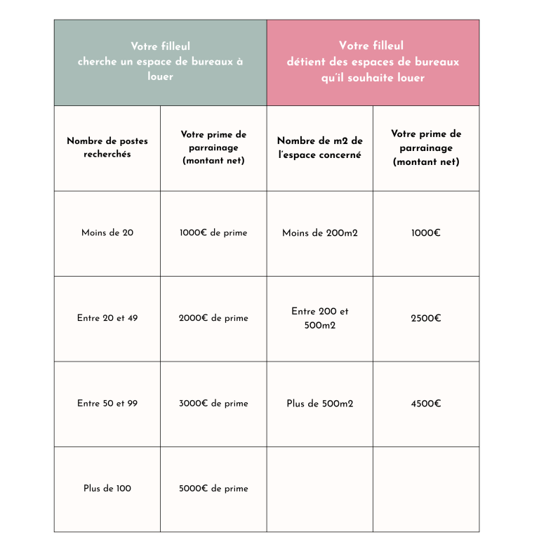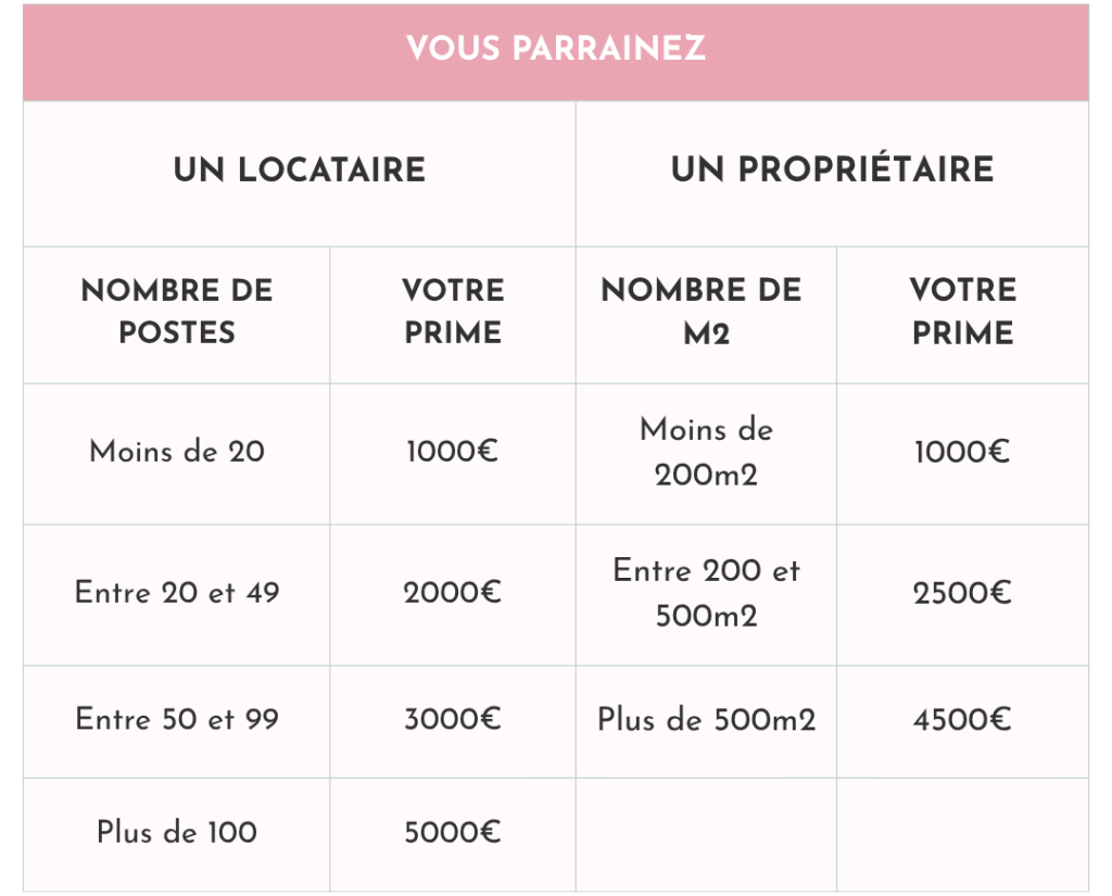 Si votre mise en relation donne lieu à la signature d’un contrat, vous recevez jusqu’à 5000€ de primes, en fonction de la taille de l’espace concerné